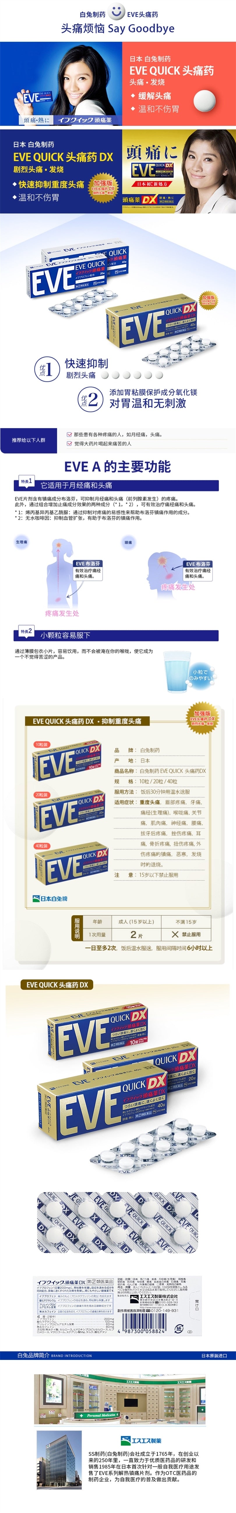 【自营】日本SS PHARMACEUTICAL白兔制药 EVE QUICK DX 快速止痛头痛药 加强版 40片