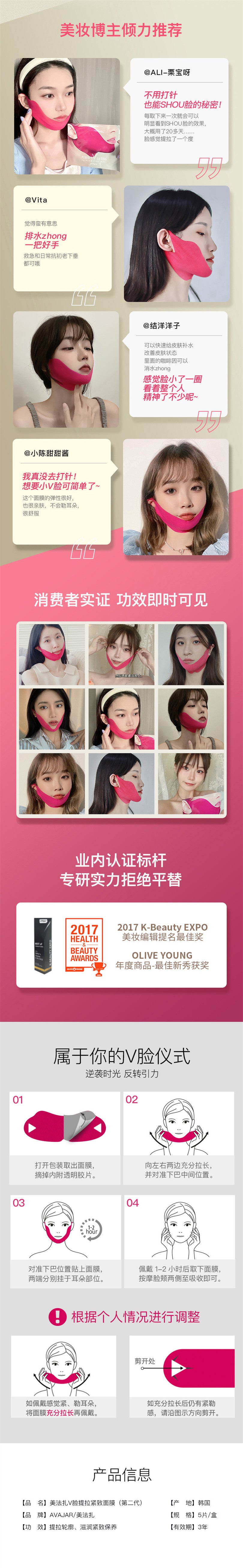 【自营】韩国AVAJAR美法扎 第二代小V脸提拉紧致面膜 5片/盒 收双下巴V脸神器挂耳绷带贴