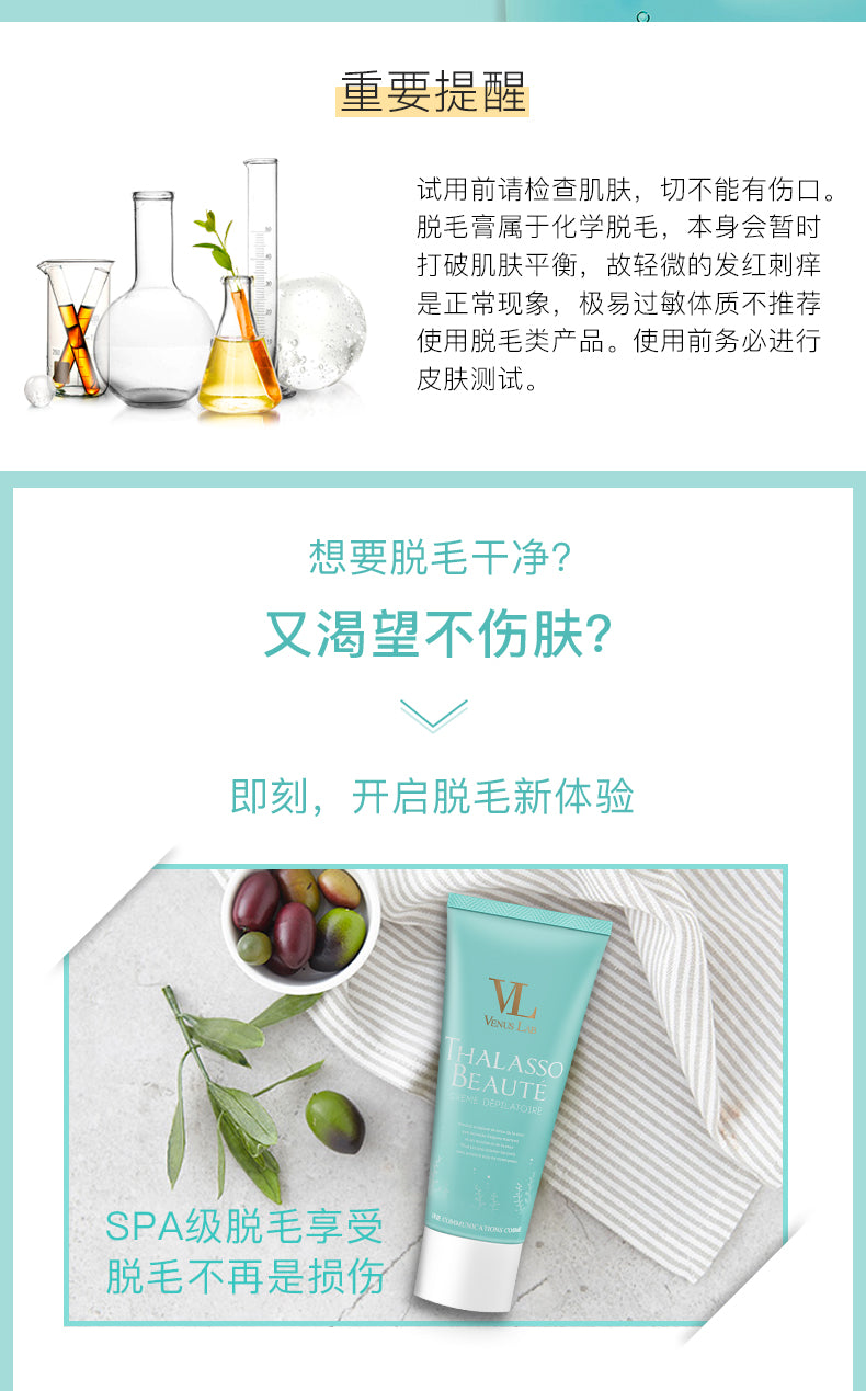 【自营】日本VENUS LAB 海泥美肌脱毛膏 200g 手臂腋下腿毛 温和不刺激 私处不可用