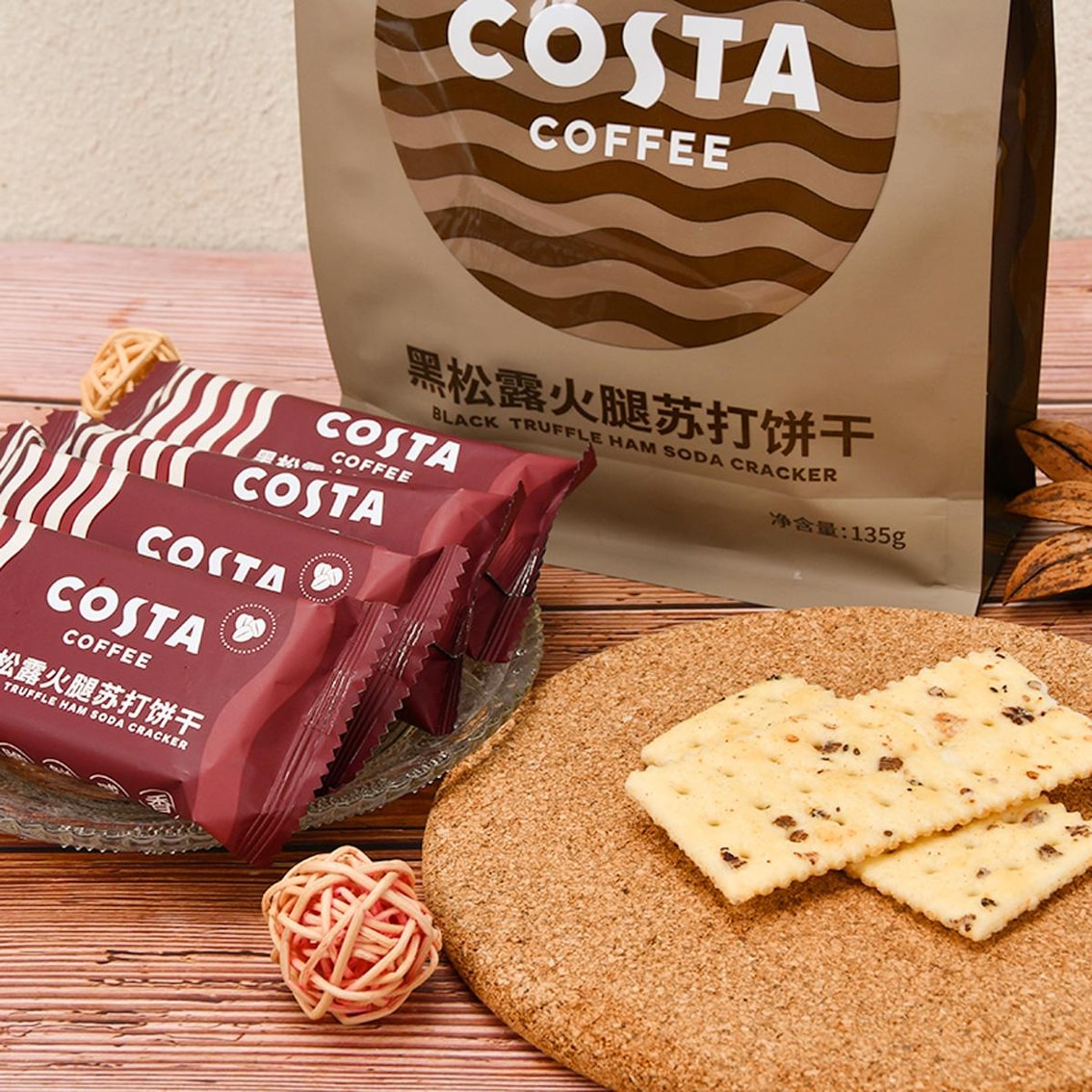 【自营】中国COSTA咖世家 黑松露火腿苏打饼干 发酵饼干 135g 咸香酥脆 轻咸不腻 办公室休闲食品点心零食