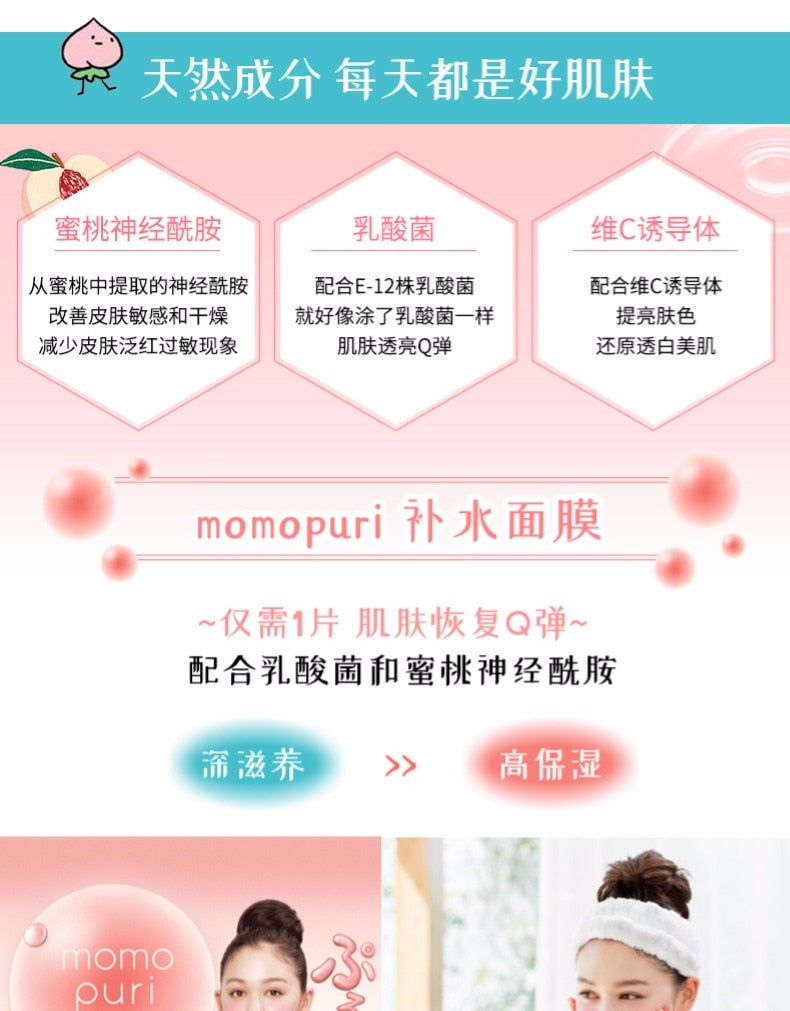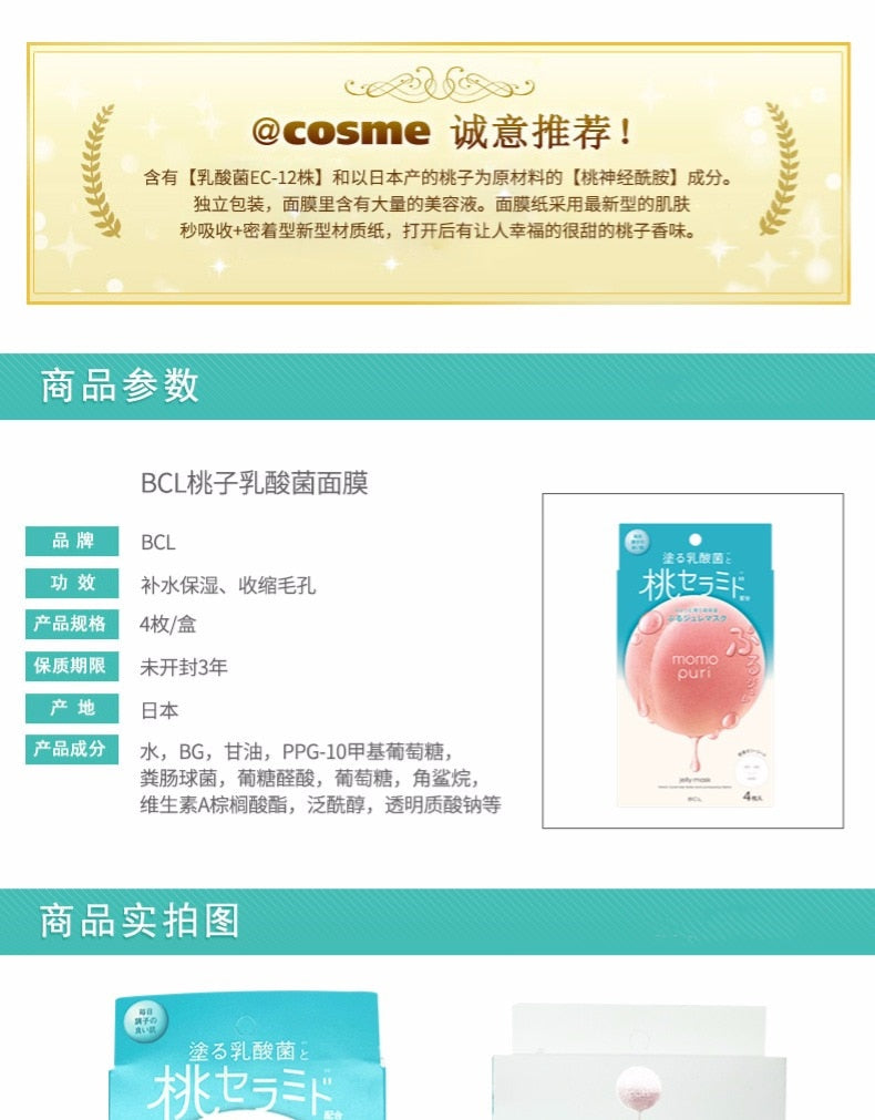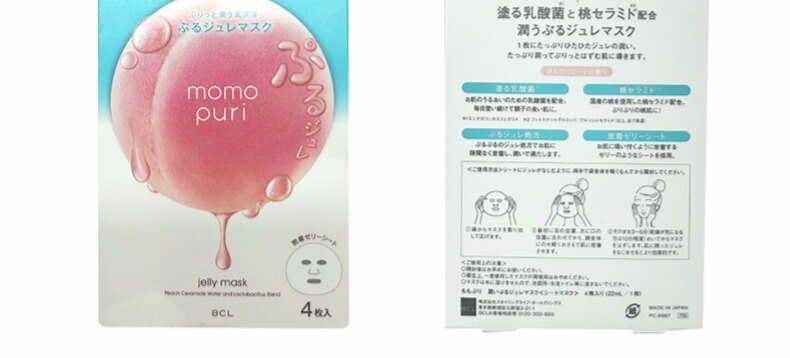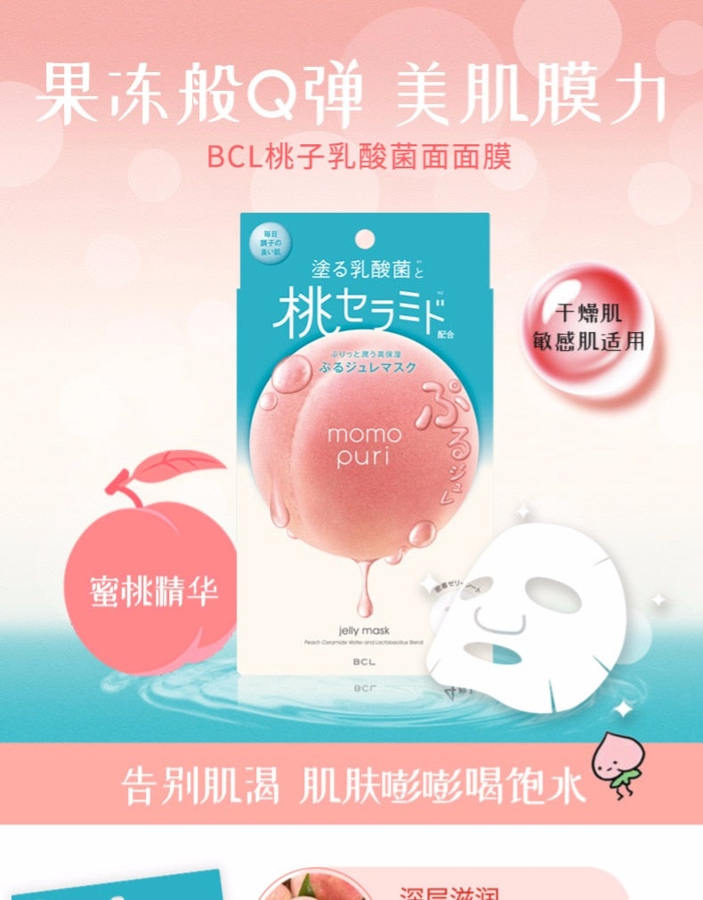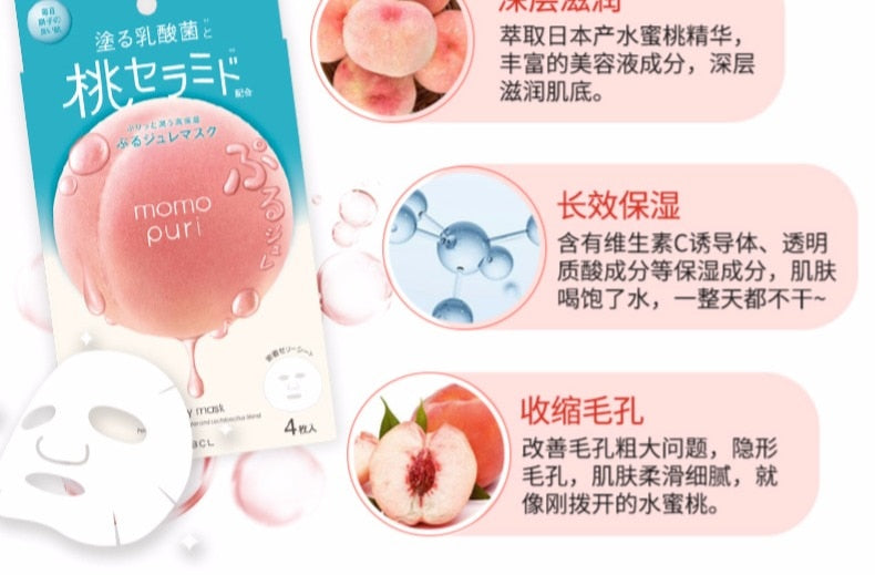 【自营】日本BCL MOMO PURI 蜜桃精华神经酰胺 乳酸菌补水果冻面膜 4片装 果冻般Q弹 美肌膜力