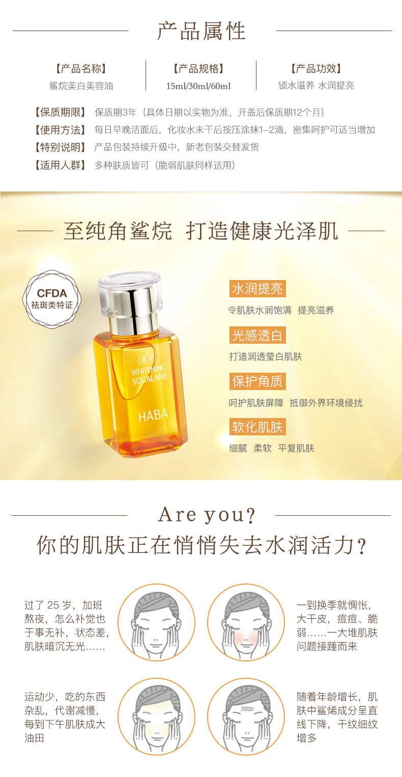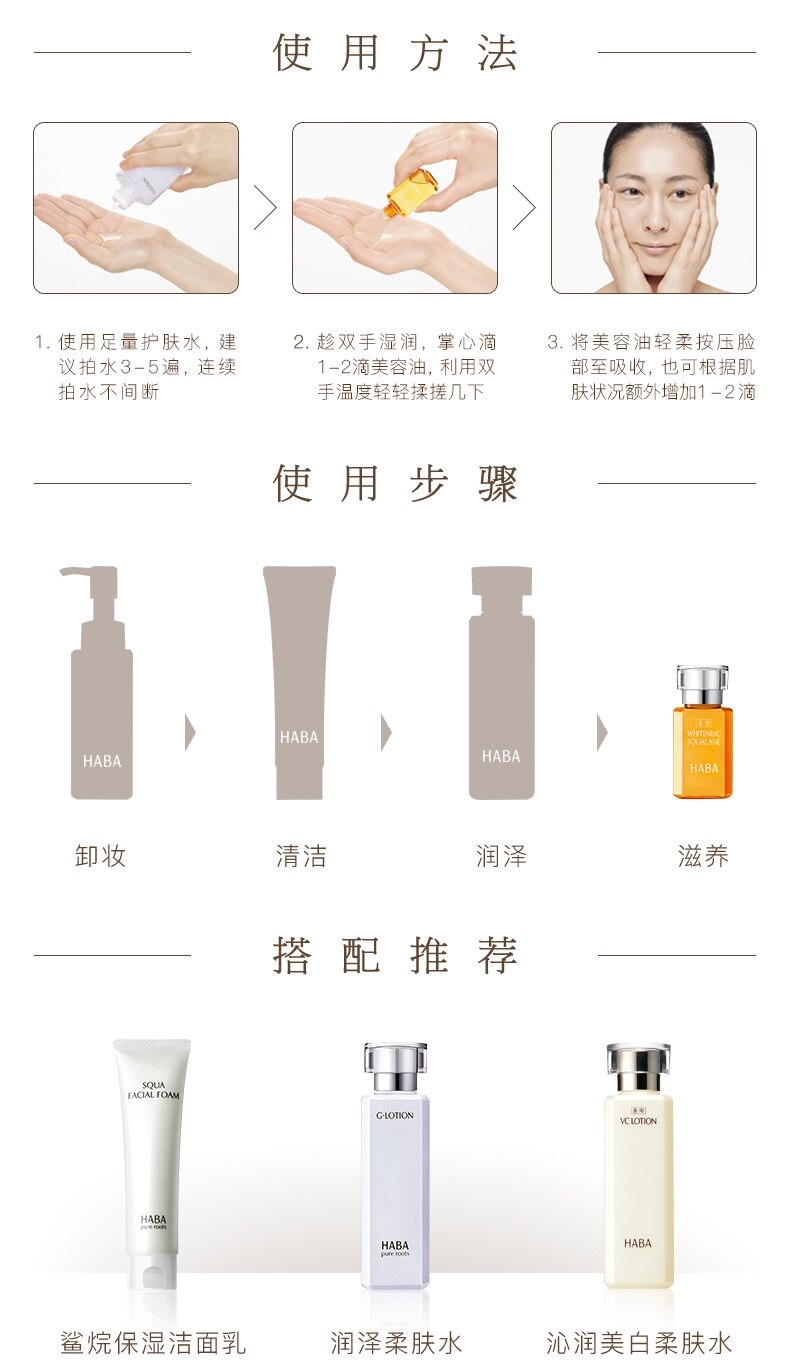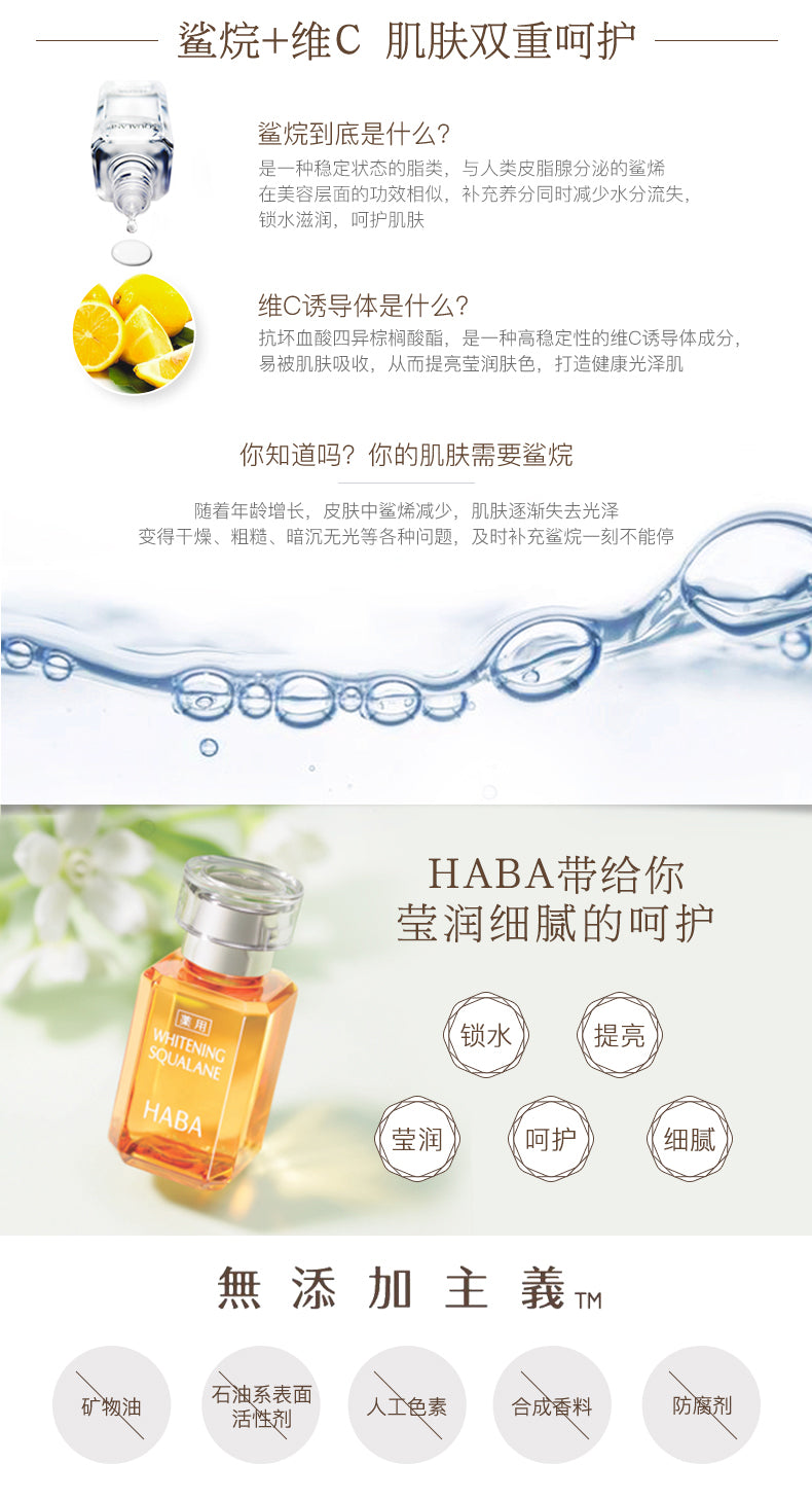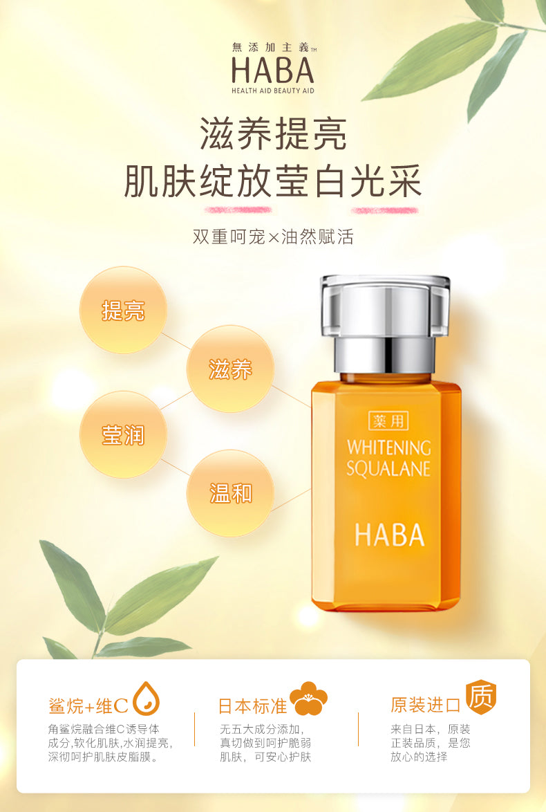 【自营】日本HABA 无添加主义角鲨烷美白精华美容油 60ml 大瓶装 COSME大赏受赏 滋养水润提亮肤色