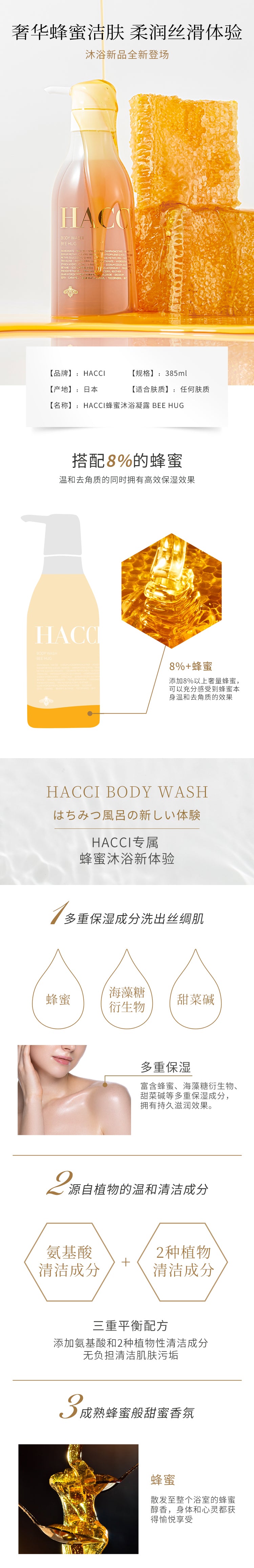 【自营】日本HACCI花绮 蜂蜜沐浴凝露 BEE HUG 385ml 保湿滋润沐浴露