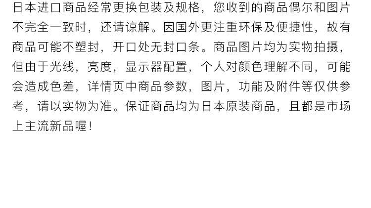- 购买【XXXX 日本直邮】或【XXXX 中国直邮】,即商品标题前显示‘日本直邮’或‘中国直邮’的产品,产品由不同日本或中国商家发出。直邮商家,每个商家分别收取商家标题注明邮费金额,以及遵循各商家标题中免邮费标准。不同商家需1~5 个工作日内处理并发送您的订单。邮寄运输时间约5-12天。(注: 如选购多件【XXXX 日本直邮】或【XXXX 中国直邮】商品,且每个商家所购商品需要免邮,则所购不同商家的商品总额,需要满足不同商家标题中的免邮费要求)