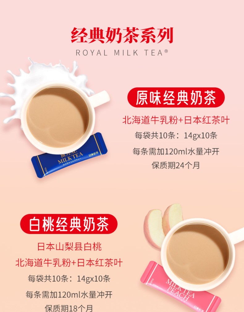 【自营】日本Nitto日东 红茶皇家奶茶 山梨县产白桃奶茶 14g×10条
