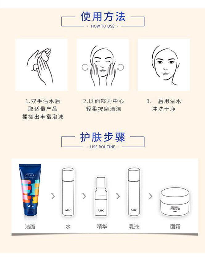 【自营】韩国AHC HYDRA B5 高效玻尿酸深层清洁保湿补水洗面奶 180ml 20周年限定包装