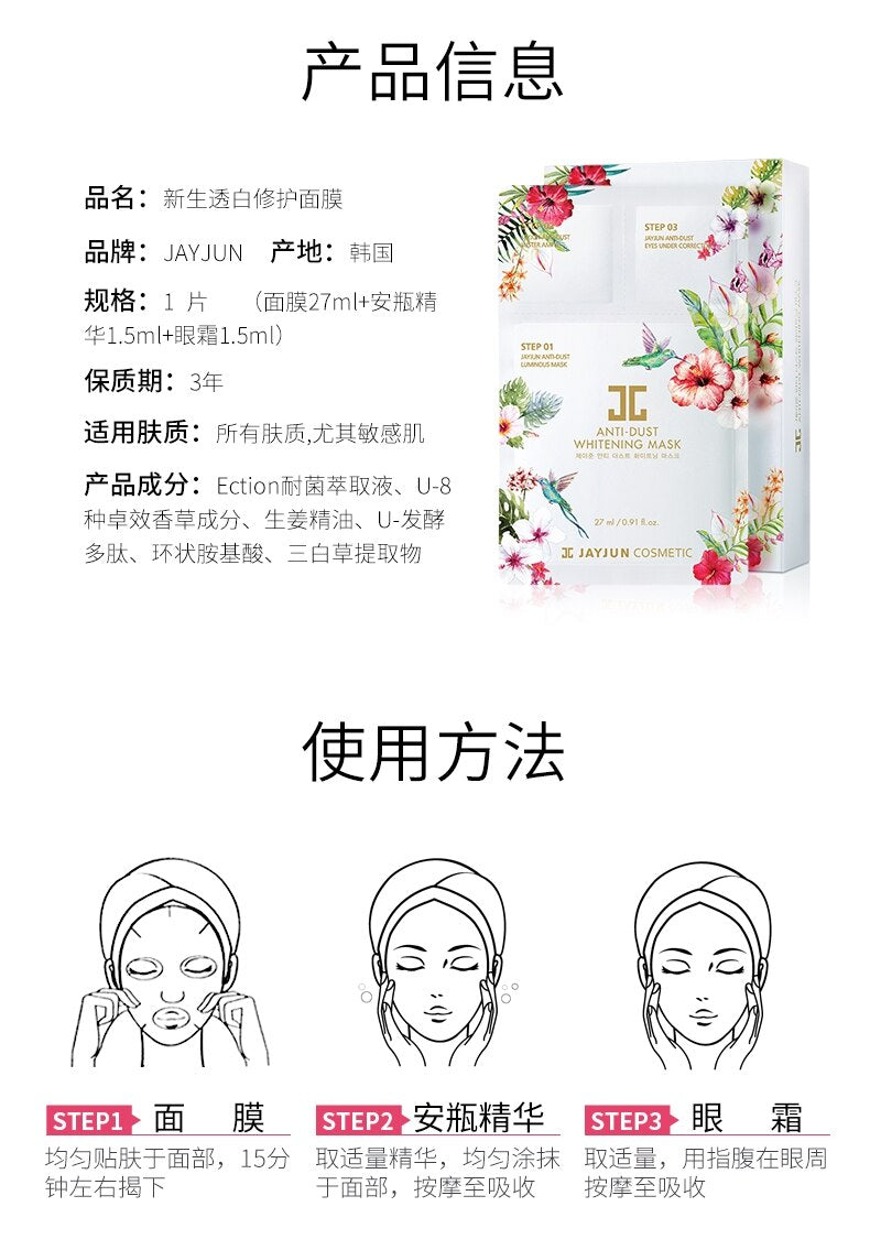 【自营】韩国JAYJUN 水光新生透白修护滋润美白面膜 单片入 27ml 保湿提亮防雾霾