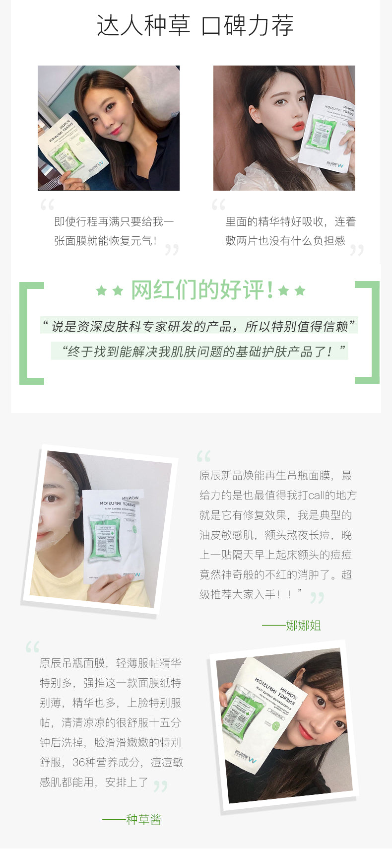 【自营】韩国Wonjin原辰 焕能再生绿吊瓶童颜面膜 30g 单枚入