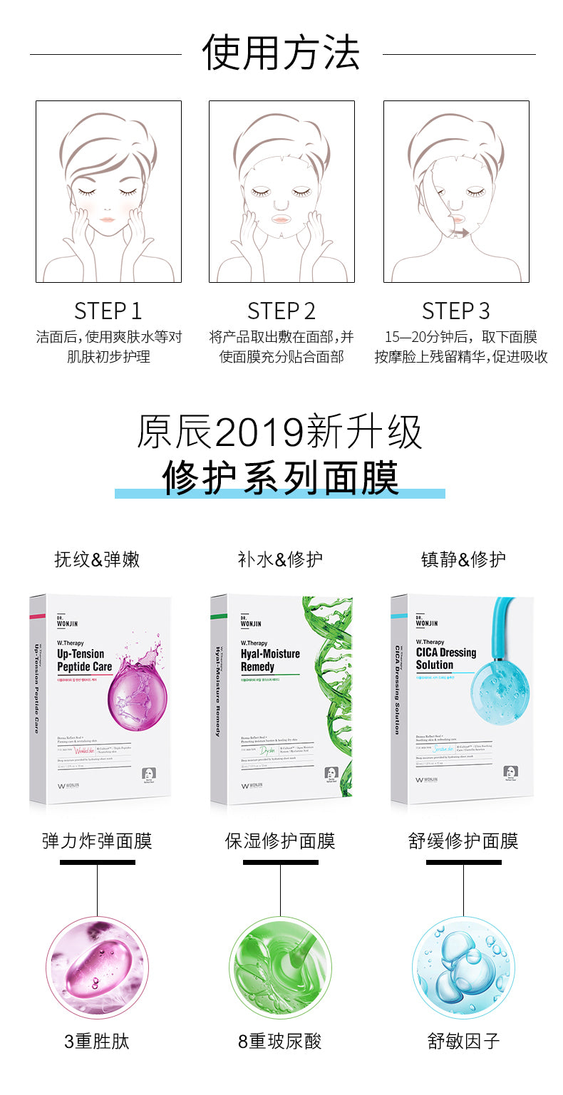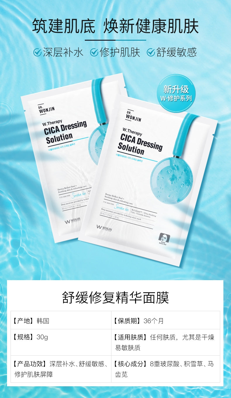 【自营】韩国Wonjin原辰 玻尿酸舒缓修复精华蓝面膜 积雪草强韧敏感肌深层补水 30ml 单枚入