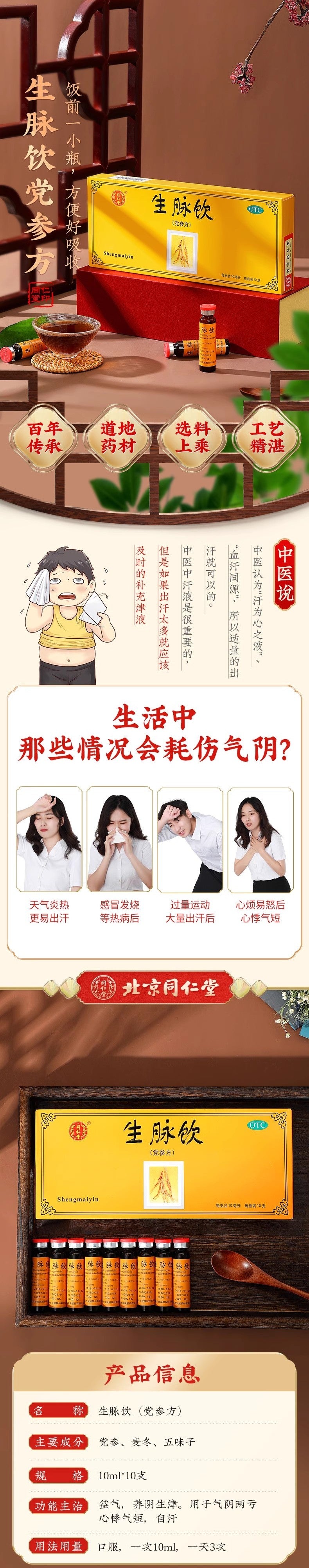 【自营】中国北京同仁堂 生脉饮党参口服液 10支 益气养阴生津气阴两亏