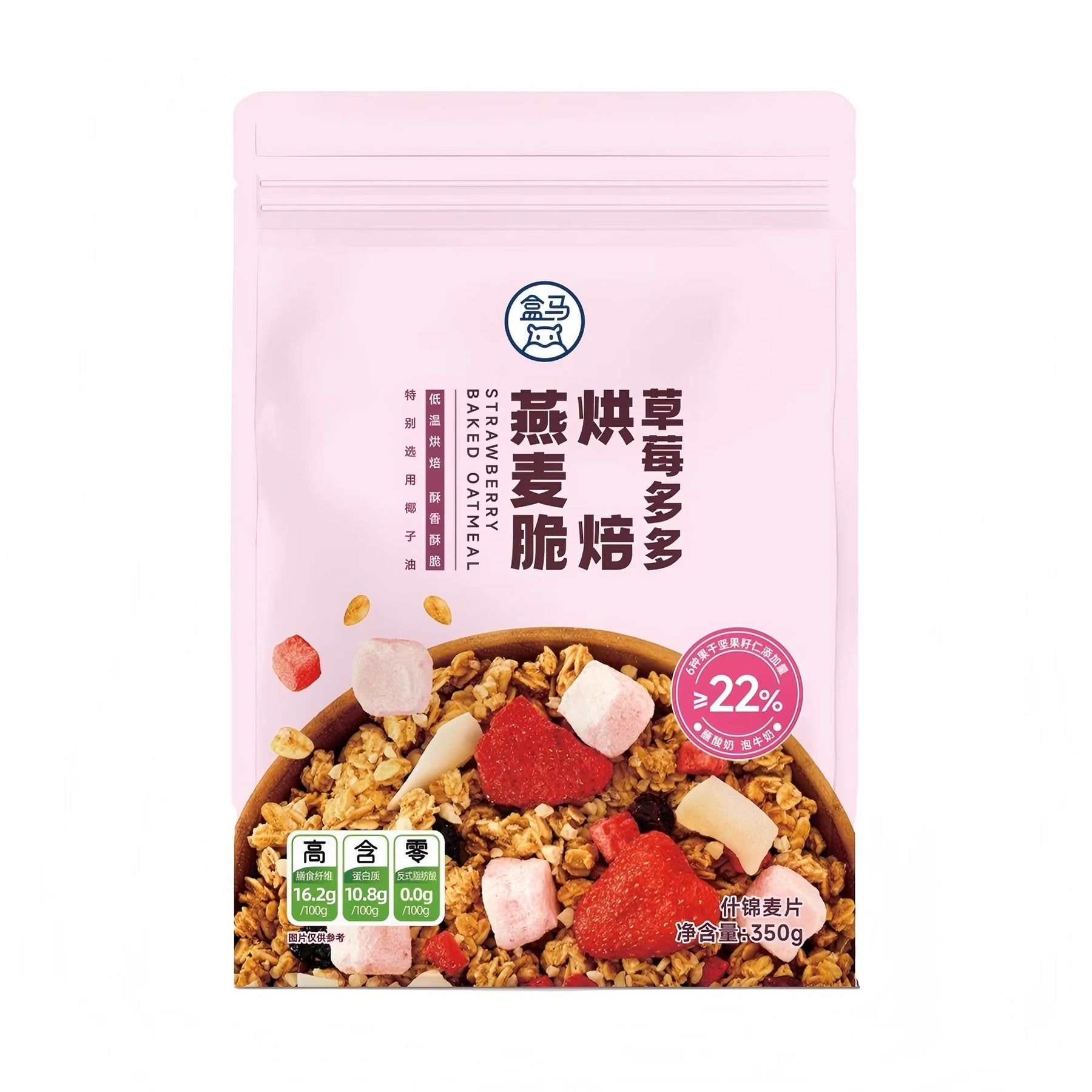【自营】中国盒马 草莓多多烘焙燕麦脆 350g 即食谷物可干吃水果燕麦片