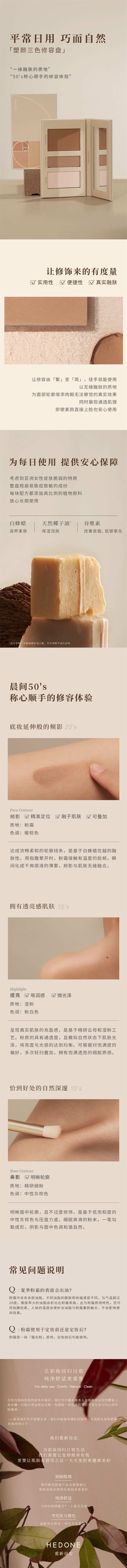【自营】中国HEDONE 立体塑颜三色修容盘 17g 高光阴影组合修容盘立体提亮肤色遮瑕修饰肤色