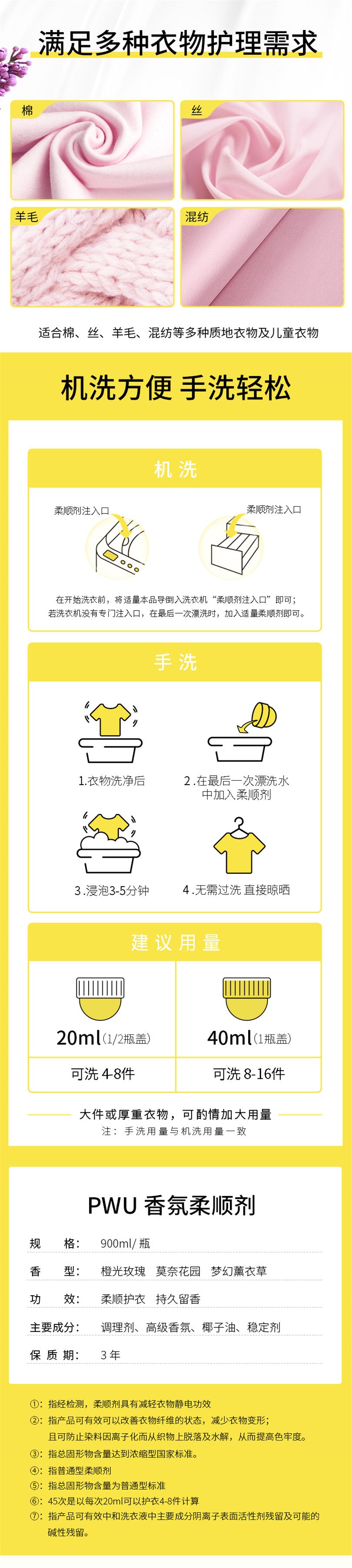 【自营】中国PWU朴物大美 衣物柔顺剂 橙光玫瑰 900ml 洗衣护理液香氛持久留香洗衣防静电