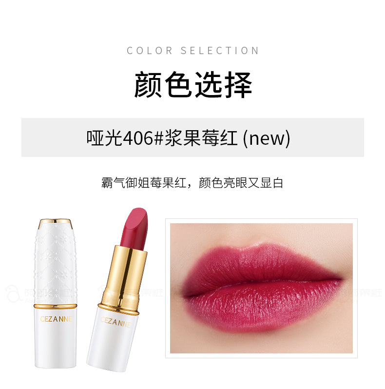 【自营】日本CEZANNE倩诗丽 润彩唇膏保湿持久防水不脱色口红 302号 珠光玫红色