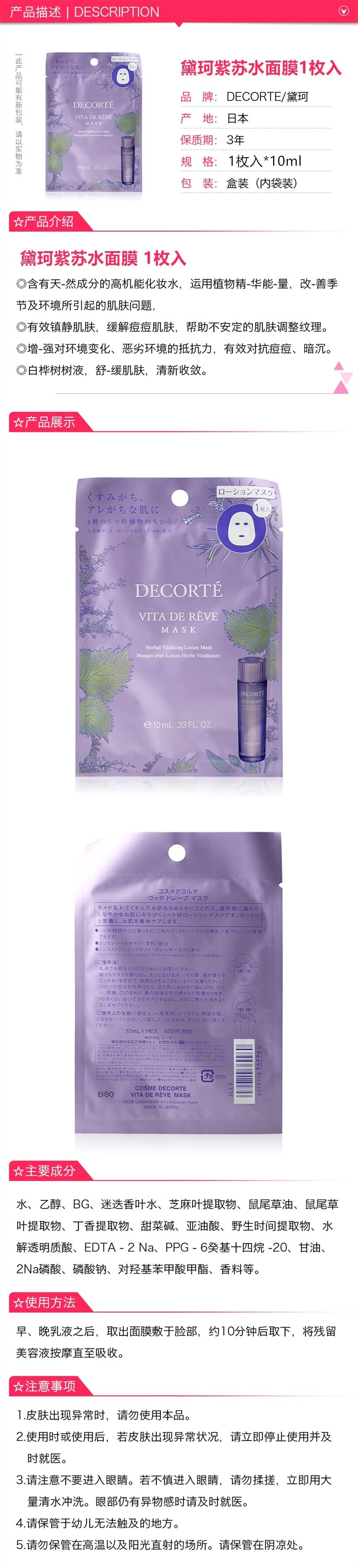 【自营】日本COSME DECORTE黛珂 紫苏水面膜 高机能保湿痘肌面膜贴 1枚入