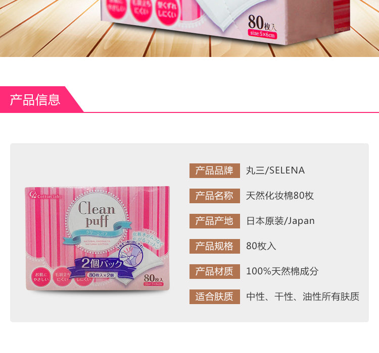 【自营】日本COTTON LABO棉花研究所 Clean Puff 丝柔净颜化妆棉 卸妆棉 80枚