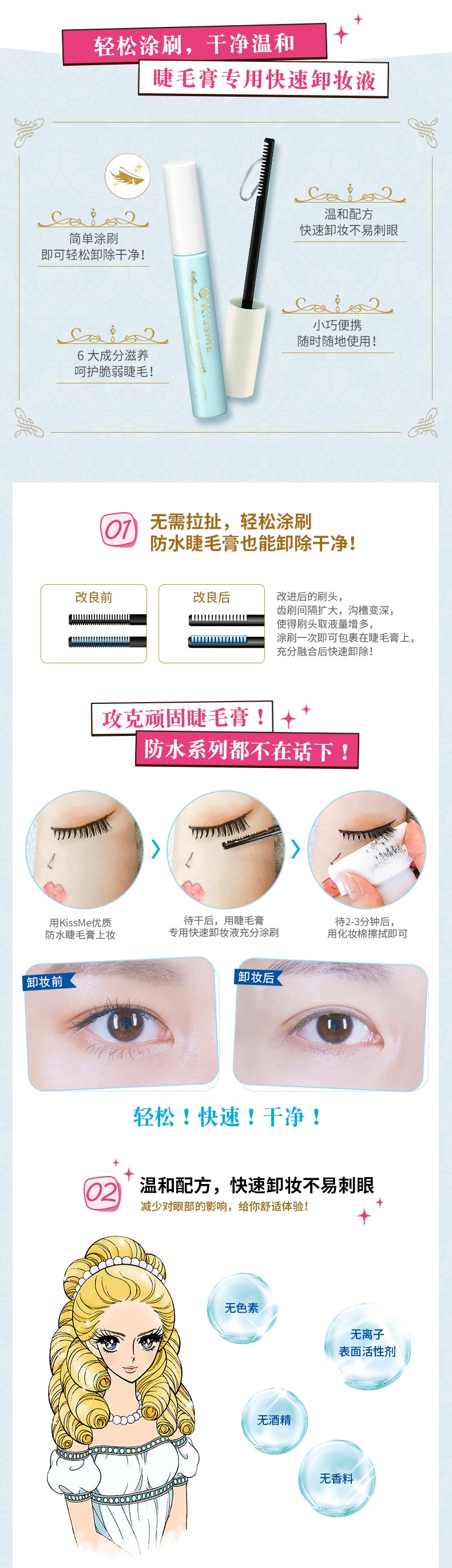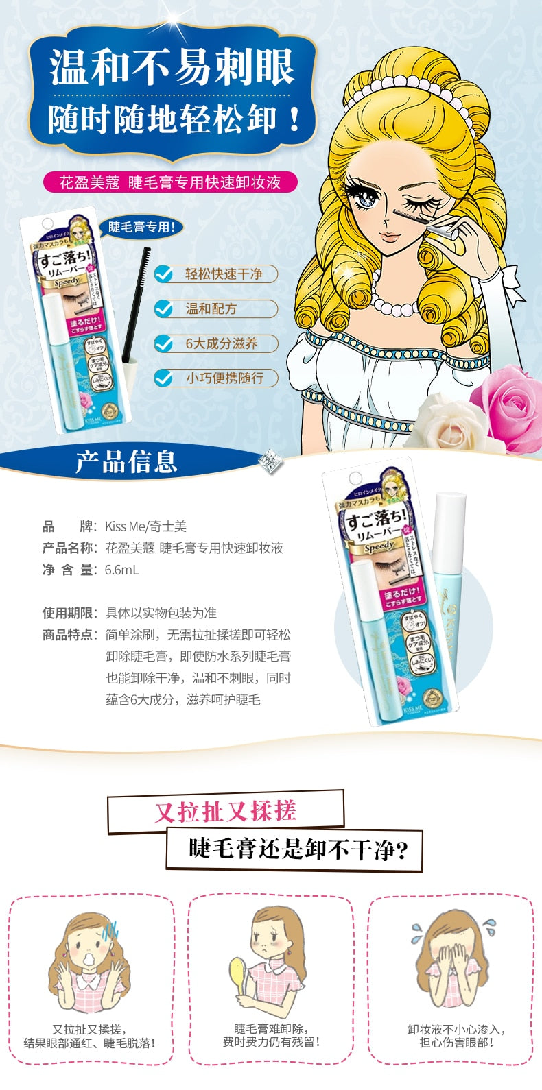 【自营】日本ISEHAN伊势半 KISS ME花漾美姬 梦幻泪眼瞬间睫毛膏卸妆凝胶 6.6ml COSME大赏受赏