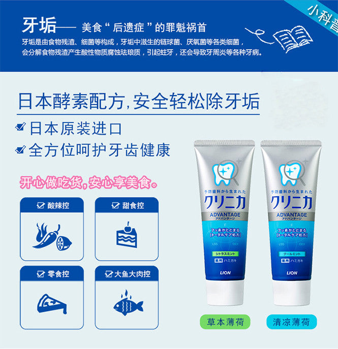 【自营】日本LION狮王 CLINICA齿力佳 Advantage酵素洁净防护牙膏 130g 草本薄荷