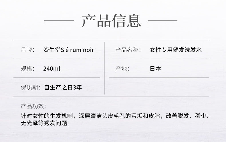 【自营】日本SHISEIDO资生堂 Serum noir不老林防脱发固发洗发水 240ml 护发滋养顺滑