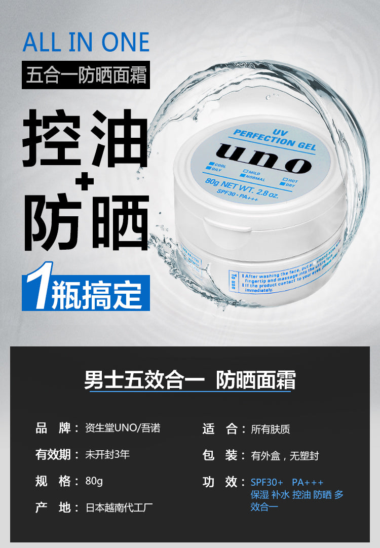【自营】日本SHISEIDO资生堂 UNO吾诺 男士多效合一完美面霜 80g 蓝色清爽保湿防晒