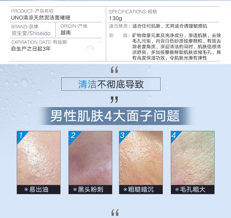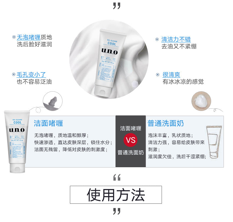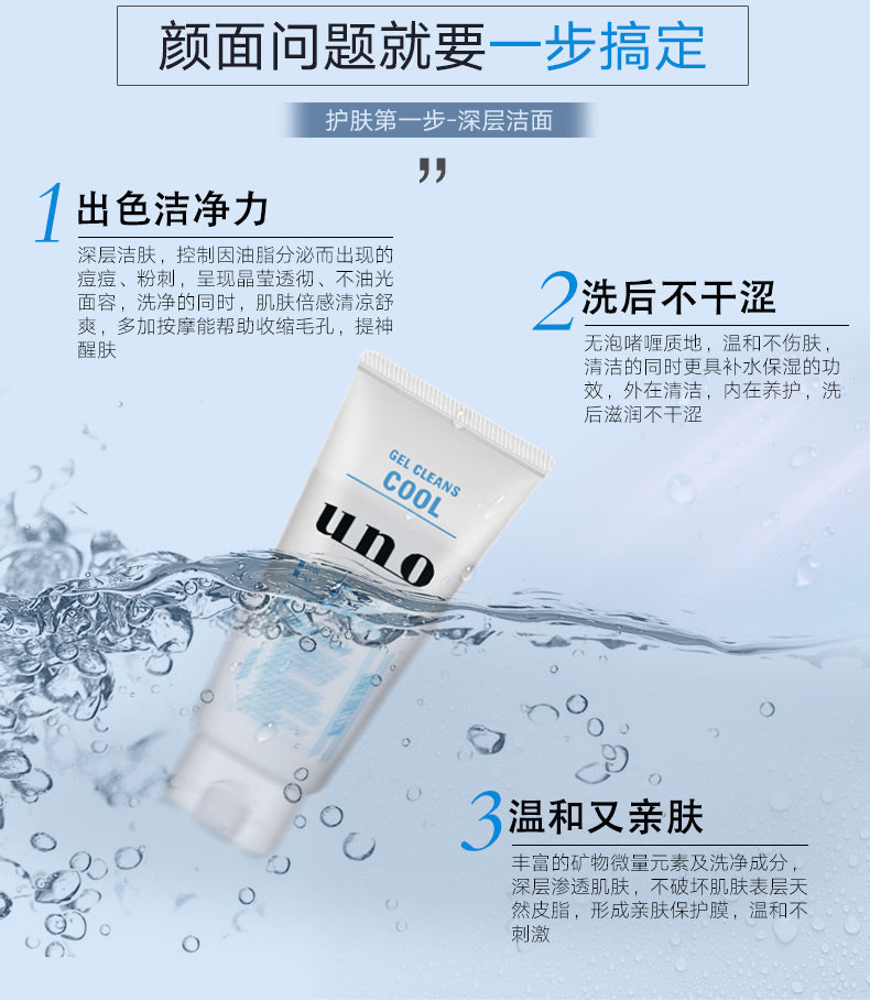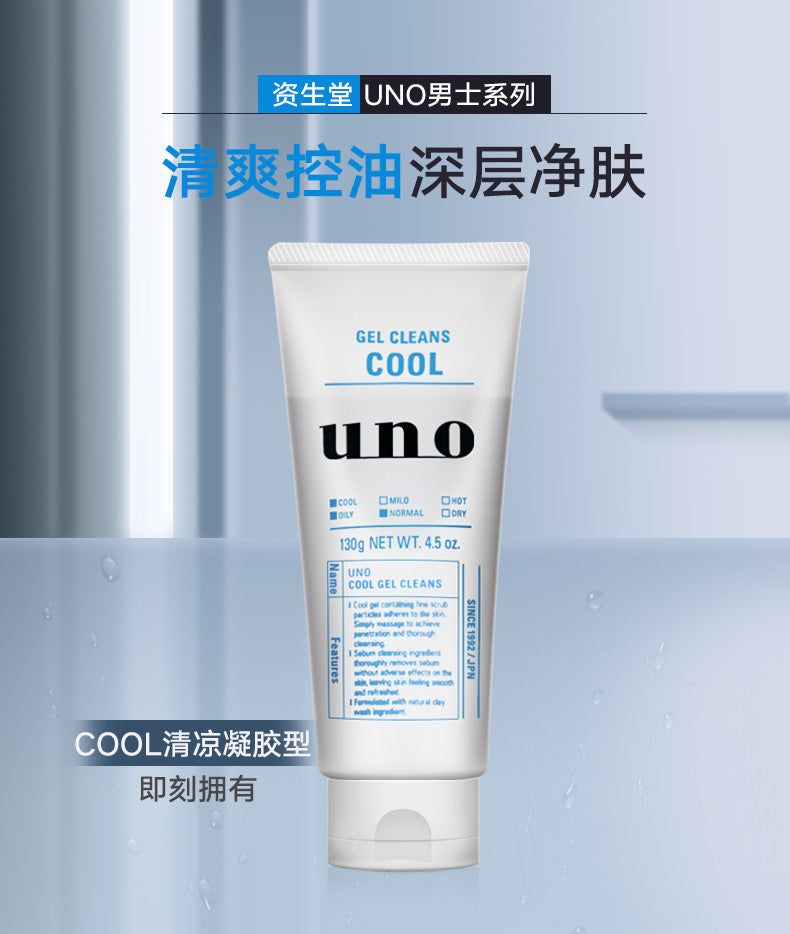 【自营】日本SHISEIDO资生堂 UNO吾诺 男士洁面啫喱 130g 清凉凝胶型 洗面奶磨砂清洁去角质