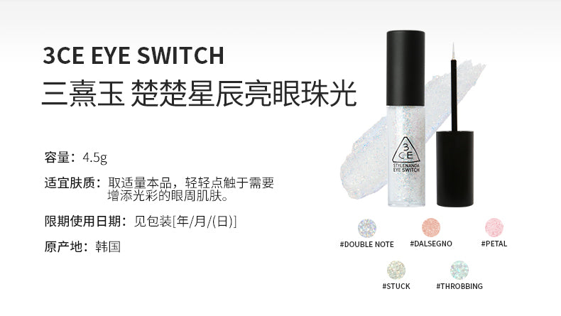 【自营】韩国3CE 一滴泪液体眼影EYE SWITCH细腻珠光 #PETAL 粉金珠光 4.5g
