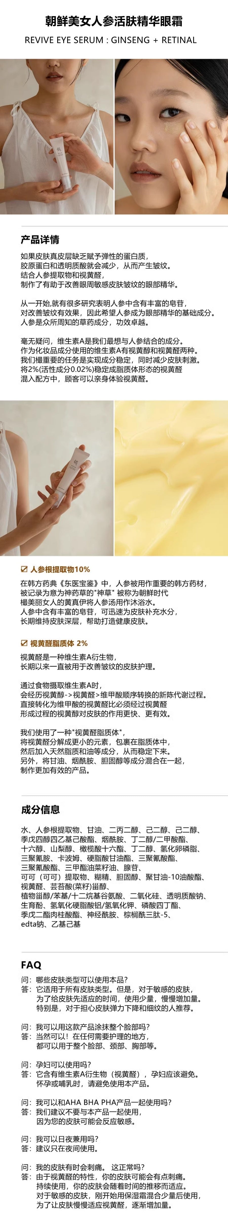 【自营】韩国Beauty of Joseon朝鲜美女 人参活肤精华眼霜 30ml 含视黄醇 A醇 淡化眼袋保湿滋养提亮眼周修护舒缓淡化黑眼圈