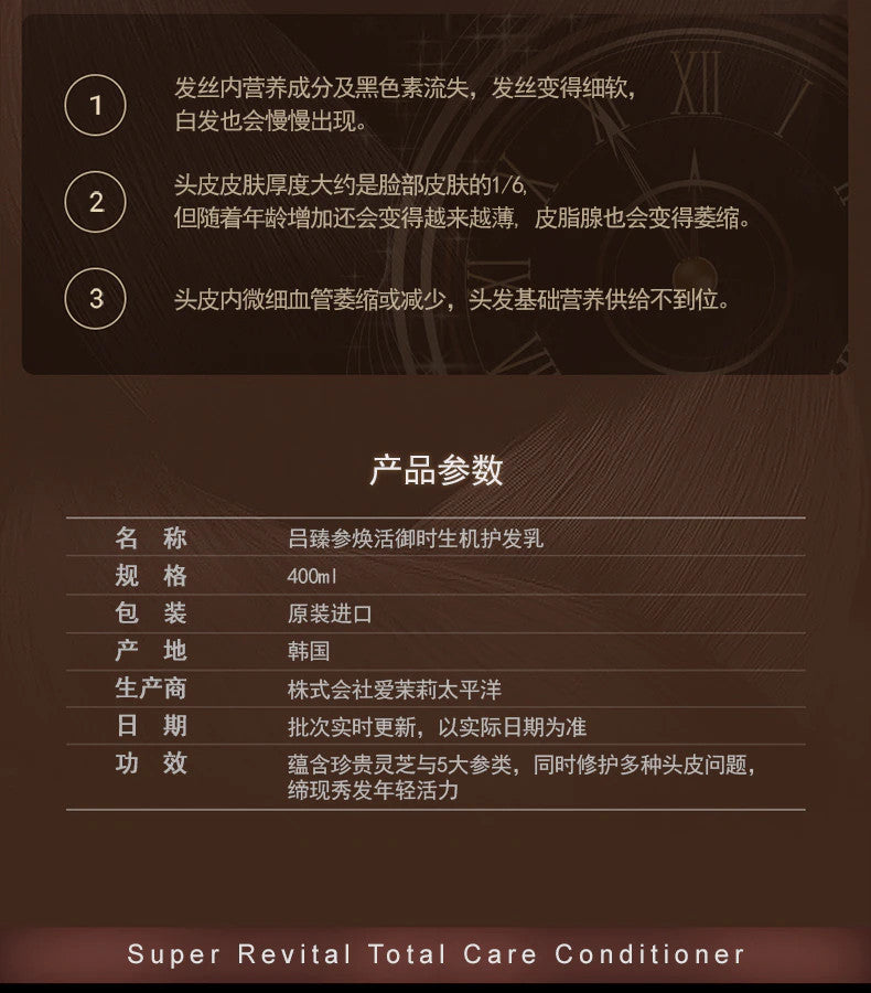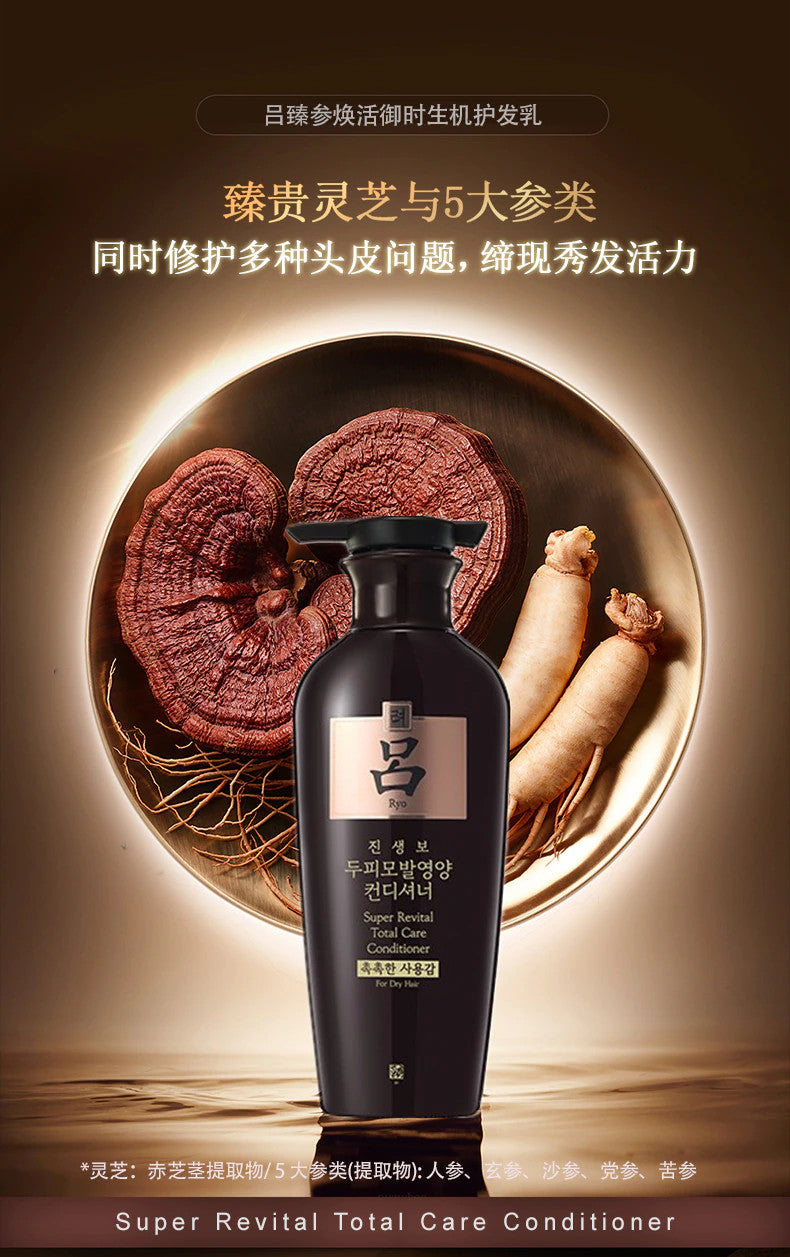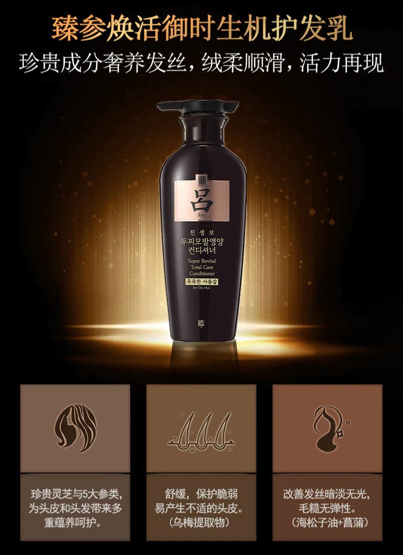 【自营】韩国RYO吕 黑色臻参焕活御时生机抗老化防脱发护发素 中/干性发质适用 400ml