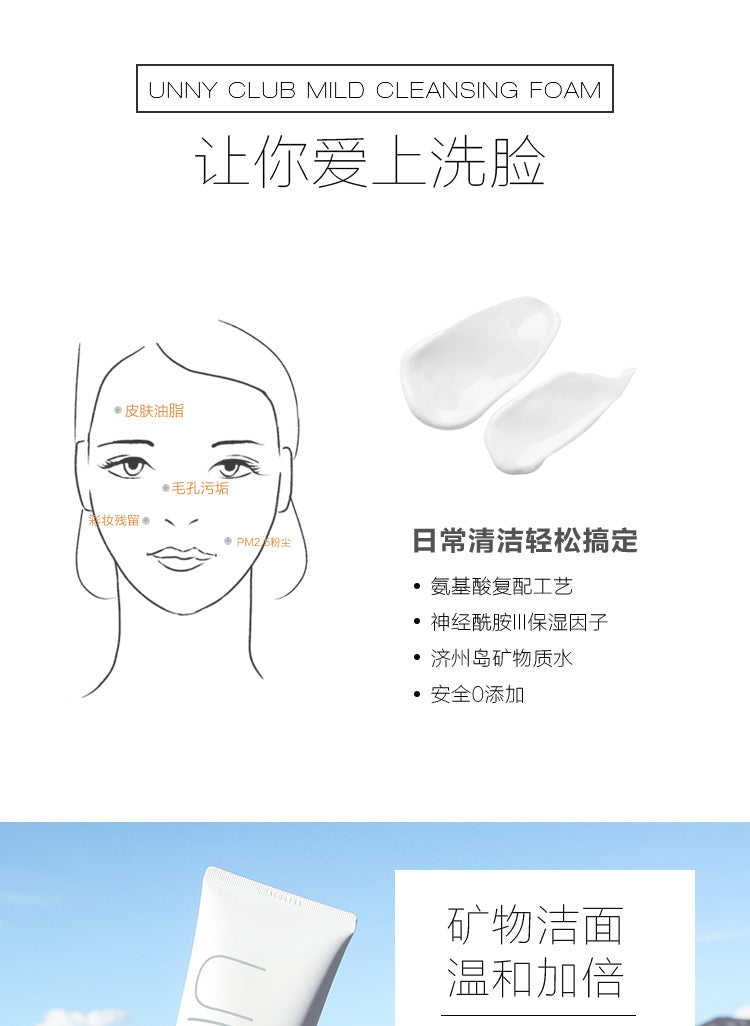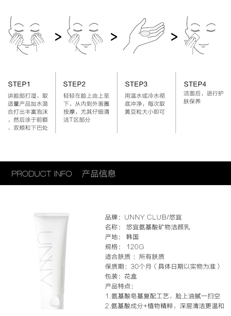 【自营】韩国UNNY 矿物质氨基酸洗面奶 120ml 泡沫洁面乳 敏感肌 深层清洁