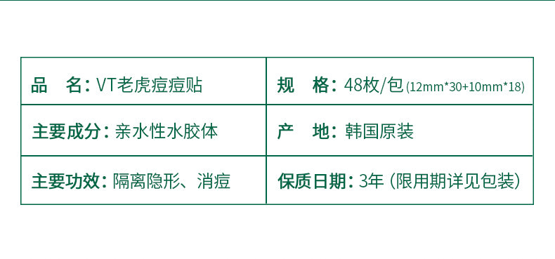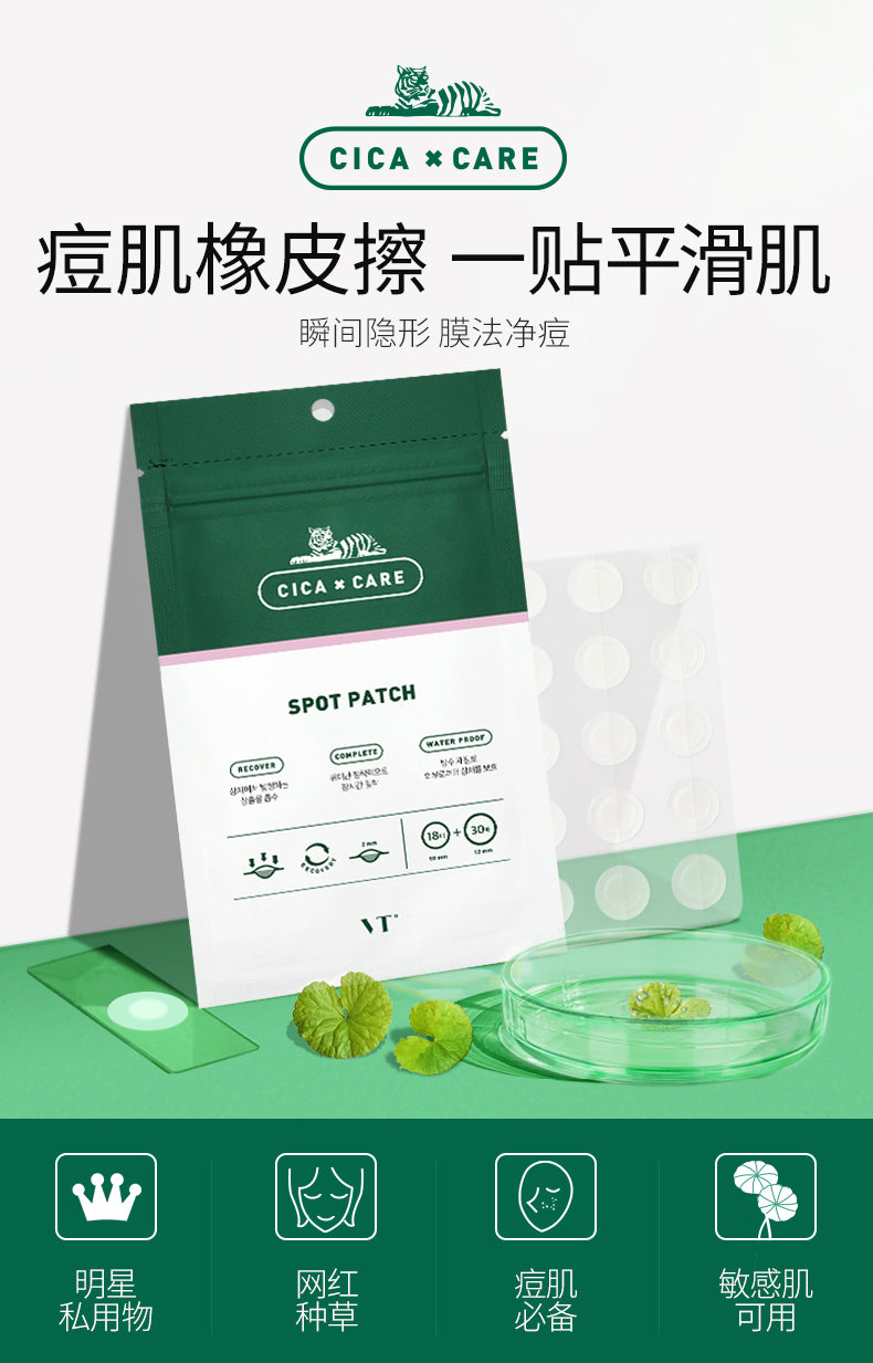 【自营】韩国VT COSMETICS CICA老虎痘痘贴 48枚 大包装 隐形净痘贴吸脓急救贴
